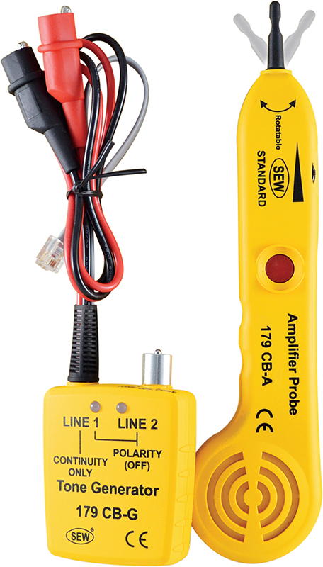 Индикатор обрыва. Поисковый комплект в составе датчика с тональным генератором и усилителя-приёмника для проверки телекоммуникационных систем и кабельных распределительных сетей, обнаружение проводов, «прозвонка» многожильных кабелей без нарушения изоляционной оболочки и гальванического контакта, тесты непрерывности и полярности, поворотный наконечник датчика для обеспечения удобства при работе с проводами и кабелями. Приемник 270х50х25 мм, 125 г, 9 в "крона"; генератор 86х63х26 мм, 130 г, 9 в "крона".