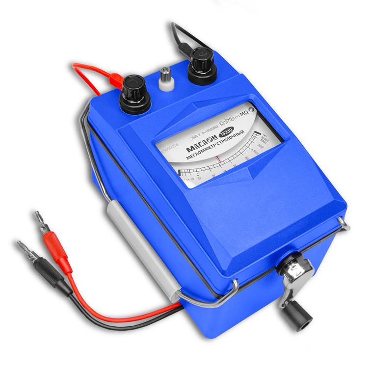 Устройство приводится в действие вручную — для генерации необходимого напряжения требуется вращать рукоятку со скоростью 150 оборотов в минуту. Это делает прибор полностью автономным, не зависящим от внешних источников питания, что особенно ценно при работе в полевых условиях, на удаленных объектах или в местах, где отсутствует доступ к электросети. Изоляция самого прибора рассчитана на выдерживание напряжения до 3 киловольт, что гарантирует безопасность оператора даже при случайных перегрузках или нештатных ситуациях.