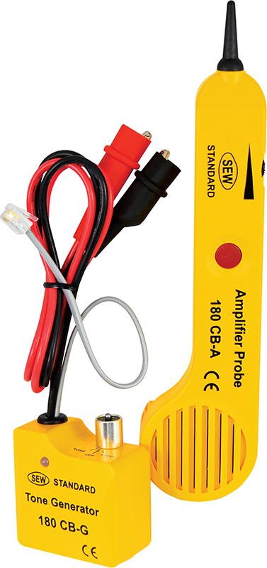 Комплект: измерительный генератор 180 CB-G (измерительный генератор обеспечивает: определение полярности и состояния (свободно, занято, вызов) ТЛФ линии, идентификацию ТЛФ пар, обнаружение проводов без нарушения изоляционной оболочки (непрерывный и прерывистый сигнал), прозвон линий, тестирование коаксиальных кабелей, батарейное питание - 9 В) и пробник-усилитель 180 CB-A (усилитель с динамиком для обнаружения проводов и кабелей без нарушения изоляционной оболочки, выход для подключения наушников, батарейное питание - 9 В).