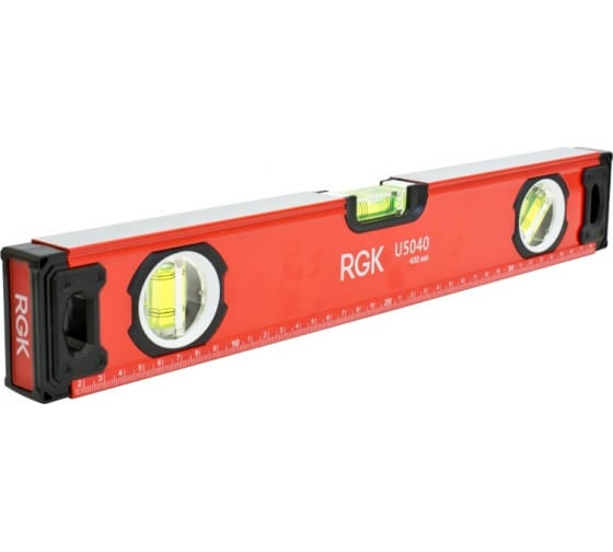 Строительный уровень RGK U5040 длиной 40 сантиметров оснащен двумя магнитами на противоположных сторонах для крепления уровня на металлической поверхности, чтобы освободить руки при проведении разметки.